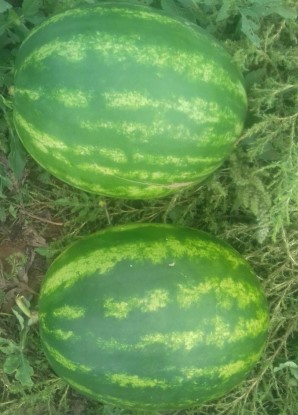 • Плод широкоэллиптический, фон светло-зелёный, полосы размытые, тёмно-зелёные, средней ширины.