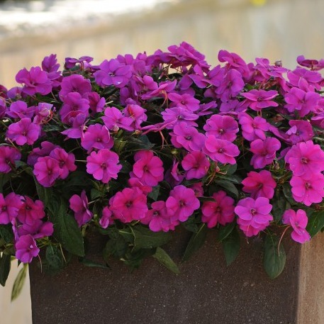 Бальзамин новогвинейский Дивайн. Растение компактное, хорошо ветвится, обильно цветет. Цветки крупные, ярких окрасок. Расцветка листвы варьируется от зеленого до бронзово-зеленого. Подходит для выращивания не только как комнатное растение, но и в саду и на балконе. Цветет все дето.Высота растения: 25-35 см.Размер цветка: 4-5 см.Время выращивания в кассетах: 5-6 недель.Время выращивания после пересадки в горшки: 7-8 недель.Предпочитает мягкую и легкую почву, которая легко впитывает воду. Избегайте излишка азотных удобрений – это отрицательно скажется на цветении. К свету не слишком требователен, может расти даже при затенении. Однако на качестве цветения недостаток света отразится негативно. Растение теплолюбиво. Минимальная температура + 15°С, при меньшей растение просто погибнет. Летом новогвинейский бальзамин способен выдерживать довольно высокие температуры. Совершенно не переносит ветра. Бальзамин нельзя заливать. Поливать его следует мелкими порциями и часто – в летний сезон. Зимой же достаточно будет одного полива в 15-20 дней. Семена на рассаду высевают с февраля по апрель. Субстратом можно присыпать, слоем не более 0,5 см. При температуре 20-25°С всходы появляются через 8-10 дней. От всходов до цветения проходит 12-14 недель. Можно выращивать как комнатное или балконное растение, а также на клумбах. Часто используют для оформления подвесных корзин.