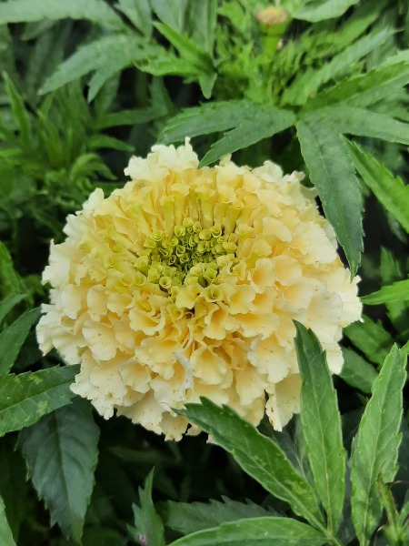 Бархатцы прямостоячие Вайтголд Макси (Tagetes erecta Whitegold Max). Современный гибрид Вайтголд Макси отличает чисто белая окраска цветков, уникальная для прямостоячих бархатцев.