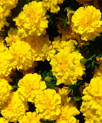 Бархатцы отклоненные махровые Бой Желтые. Куст компактный, высотой 20 см, густоветвистый. Соцветия гвоздиковидные, махровые, диаметром 3,5-4,5 см. Цветёт с июня по август. Используют для клумб, рабаток, бордюров  и создания декоративных пятен.
