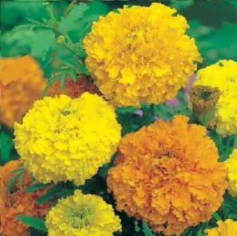 Бархатцы прямостоячие Максимикс. Растение высотой 35 см. Цветки собраны в крупные, махровые и шарообразные соцветия-корзинки, разнообразной окраски. Цветет с июля до заморозков. Чтобы продлить цветение, необходимо удалять увядшие цветки. Используют для клумб, рабаток, высоких групп, балконов и срезки.
