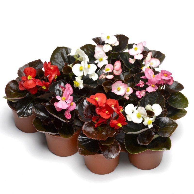 Бегония вечноцветущая Бада Бум (Begonia semperflorens Bada Boom). Серия вечноцветущей бегонии с бронзовыми листьями.