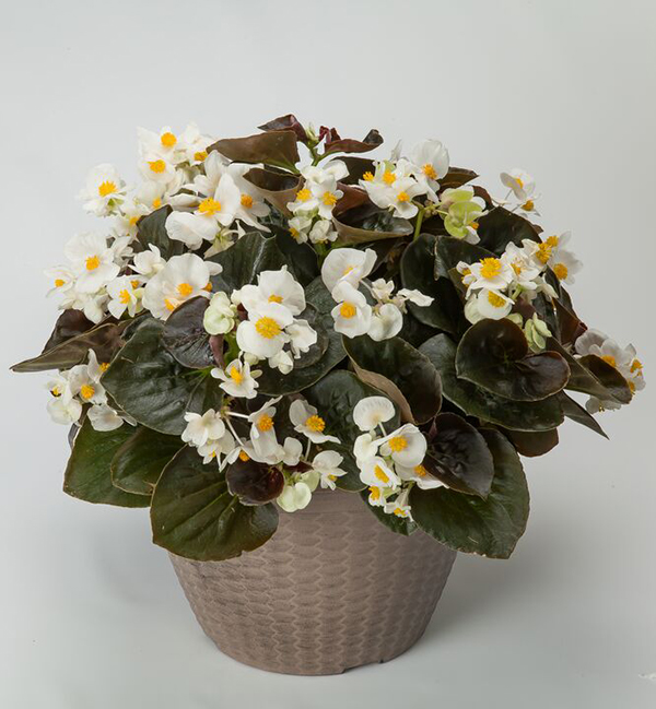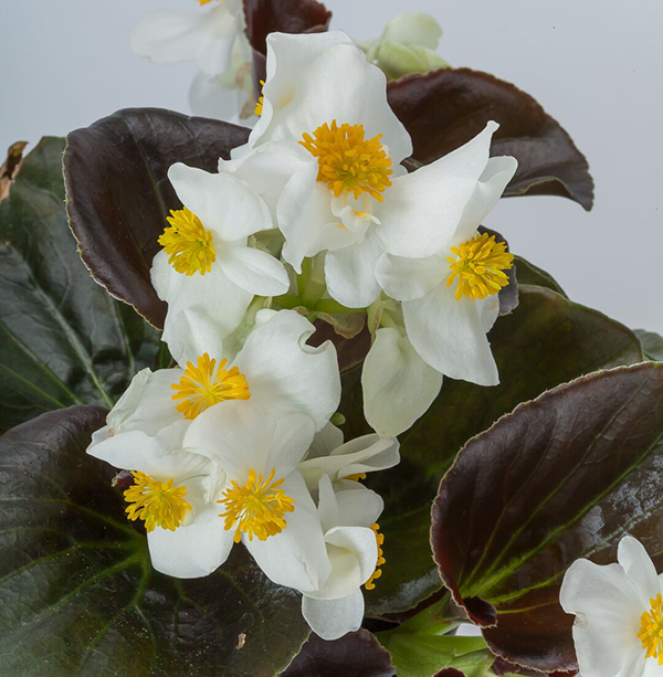 Бегония гибридная Боулер (Begonia x Hybrida Bowler) - гибридная серия с крупными цветками и бронзовой листвой.