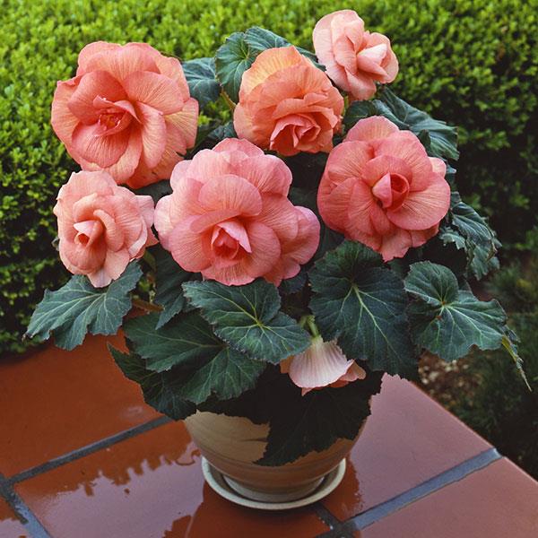 Бегония клубневая Америгибрид Роузформ (Begonia x tuberosa Amerihybrid Roseform) - популярная серия, представленая широкой гаммой окрасок и форм (пикоти, гофрированные, розовидные), что позволяет максимально расширить ассортимент клубневых бегоний.