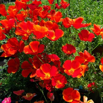 Эшшольция Зорька. Многолетнее растение, используемое как однолетнее. Образует компактный куст высотой 25 см. Цветы полумахровые, с волнистыми лепестками, красные. Сроки цветения зависят от момента посева.