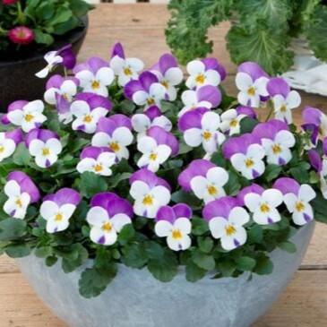 Фиалка рогатая Флорал Пауэр F1. Растения компактные, с отличным ветвлением, формируют куст шарообразной формы. На одном растении одновременно цветет множество ярких цветков. Серия представлена большим ассортиментом окрасок. Идеально подходит для ранневесенних продаж. Прекрасная альтернатива крупноцветковой виоле. Используют для создания бордюров, клумб и для посадки в контейнеры. Высота: 10 см.