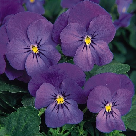 Фиалка рогатая Совершенство фиолетово-голубая. Стебли образуют плотные подушки. Крупные, округлые, фиолетово-голубые цветки. Одновременно на кустике насчитывается до 60 цветков. Цветёт с мая по сентябрь. Используют для бордюров, альпинариев, миксбордеров, идеально подходит для создания цветочного коврика.
