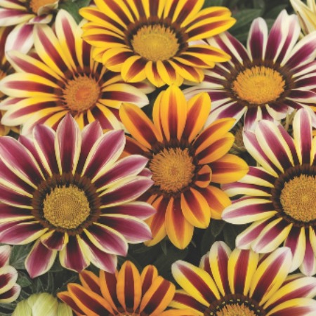 Газания Фрости Кисс (Gazania rigens Frosty Kiss). Самая раннецветущая и наиболее однородная серия с серебряными листьями, представленная на рынке.