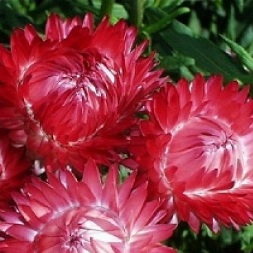Гелихризум Королевский Размер. Слегка раскидистый куст достигает высоты 100 см. На каждом растении около 25 красных соцветий диаметром 5-6 см. По краю соцветия располагаются суховатые прицветники, создающие впечатление «махровости». Цветет с августа по сентябрь.