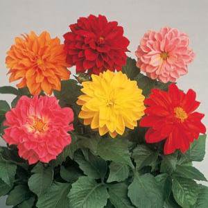Георгина гибридная Фигаро (Dahlia x hybrida Figaro) - серия карликовой георгины с махровыми цветками и плотными компактными кустиками.