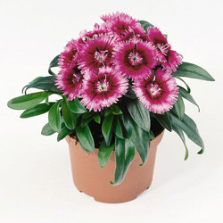 Гвоздика гибридная Чиба (Dianthus interspecific Chiba).  Межвидовой гибрид гвоздики серии Чиба(Chiba) имеет суперраннее цветение и очень компактный и в то же время густой мощный куст.