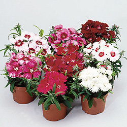 Гвоздика китайская Диана (Dianthus chinensis Diana) Низкорослый компактный гибрид сочетает в себе раннее цветение и компактный габитус с большими одиночными цветками и широким выбором окрасок.