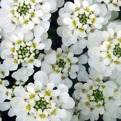 Иберис вечнозеленый Тахо. Многолетнее травянистое растение. Высота - 20-25 см. Листья вечнозеленые, продолговатые, цельнокрайные, темно-зеленые, блестящие. Цветки белые до 1,5 см в диаметре, собраны в зонтиковидные соцветия до 5 см в поперечнике. Рост умеренно интенсивный. Корневая система глубокая, разветвленная. Почва любая слабокислая или нейтральная. Зимостоек ,светолюбив,городские условия переносит хорошо. Используется в рокариях, бордюрах. Подходит для засушливых мест. Цветет на 2 недели раньше остальных иберисов, хорошее ветвление.