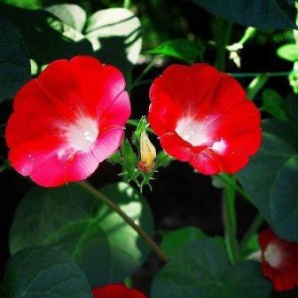 Ипомея Скарлет О`Хара. Стебли достигают 3 м длины. Цветки крупные воронковидной формы диаметром 7-9 см. Цветет обильно с июля по октябрь. Широко используются для вертикального оформления цветников различного назначения.