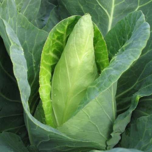 • Кочан конусовидный, частично покрытый, на разрезе беловатый