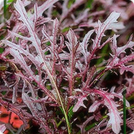 Капуста японская Мизуна Ред F1. Раннеспелый сорт листовой капусты. Рекомендован для выращивания в открытом и защищённом грунте.