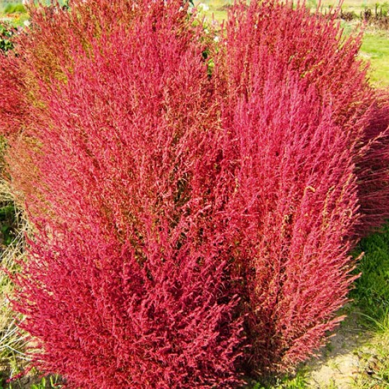 Кохия волосистая Ред Глоб (Kochia trichophylla). Аккуратный округлый кустик похож на карликовое хвойное растение. Декоративное растение, высотой 80 см, растет быстро, выдерживает регулярную стрижку. Листья изумрудно-зеленые, с наступлением осени краснеют. Используют как фокусное растение на клумбах, для живых изгородей любой конфигурации.
