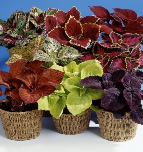 Колеус Джиант Эксибишен (Coleus blumei Giant Exhibition™) - серия колеусов высотой до 50 см с хорошим ветвлением и большими широкими листьями.