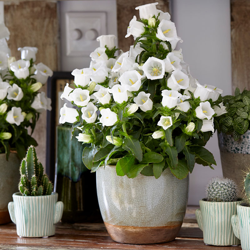 Колокольчик средний Эппил (Campanula medium nanum annuum Appeal) ценная горшечная культура с нежными цветками колокольчатой ​​формы.