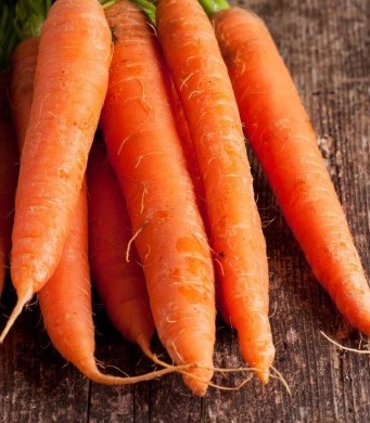 • Корнеплоды цилиндрические, насыщенного оранжевого цвета. Длина 14-16 см, диаметр 2,5 см.