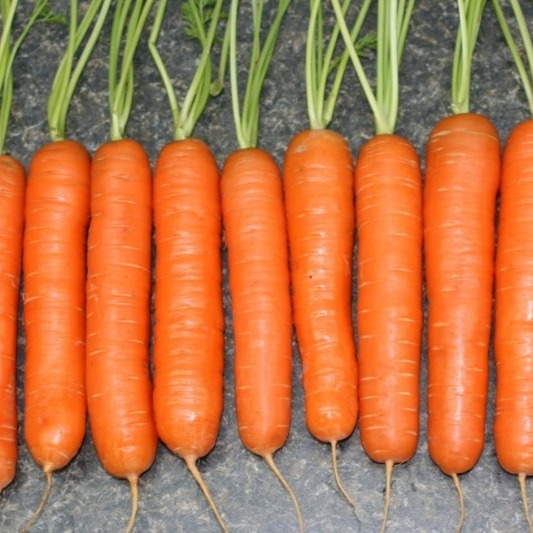 • Корнеплоды среднего размера, цилиндрические с тупым кончиком, с превосходной внутренней и внешней окраской. Поверхность гладкая с мелкими глазками, оранжевая.