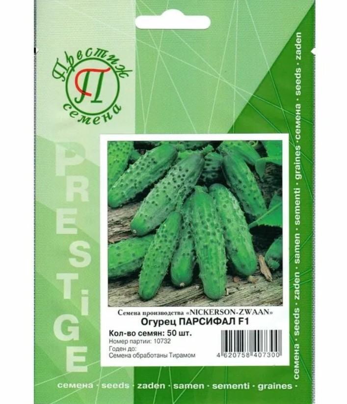 Огурец Парсифал F1. Гибрид среднепоздний, пчёлоопыляемый, салатный, консервный. Предназначен для выращивания в открытом грунте и теплицах любых типов.