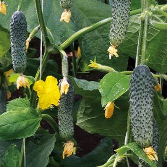 • Зеленцы 12-14 см, диаметром 3,5-4,0 см, окраска плодов темно-зеленая, яркая, поверхность крупнобугорчатая.