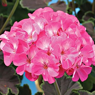 Пеларгония зональная Найт F1 (Pelargonium x hortorum Night F1) - уникальные сорта этой серии выделяются декоративными коричневыми листьями с зеленой каймой по краю.