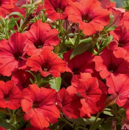 Петуния Пламя. Растение высотой около 30 см. Эффектные воронковидные цветы приятного насыщенного красного оттенка. Цветение с июня до заморозков. Прекрасно подходит для клумб, рабаток.