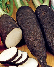 • Корнеплод цилиндрический, длиной 25-30 см, черный, поверхность гладкая, головка коническая.