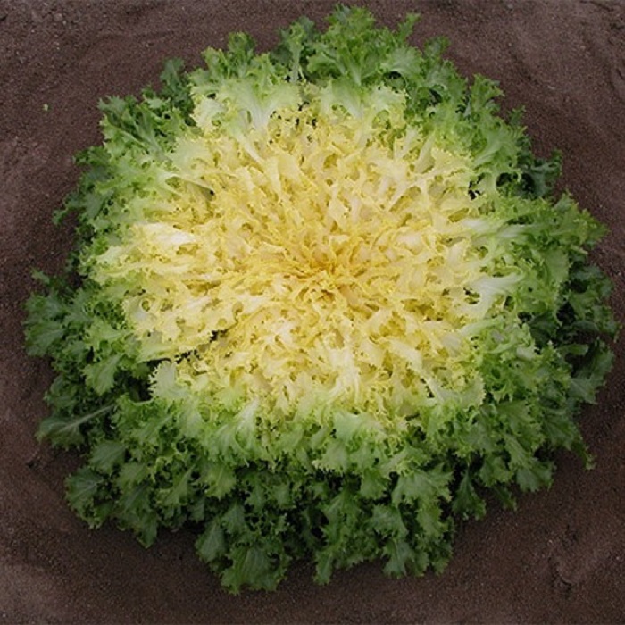 • Лист среднего размера, темно-зеленый, рассеченный, край листа волнистый, зубчатый. Сердцевина розетки листьев эллиптической формы, желтовато-зеленая, основание центральной жилки средней ширины, белое.