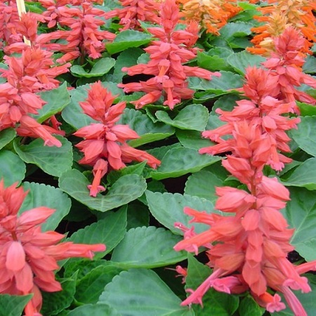 Сальвия сверкающая Редди (Salvia splendens Reddy). Один из самых популярных однолетников. Генетически компактная сальвия Редди нейтральна к длине светового дня.