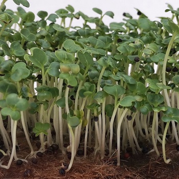 Микрозелень капусты китайской Пак Чой готова к употреблению в пищу уже через 5-6 дней после появления всходов. Листья зелёные, черешки светло-зелёные. Вкус свежий, капустный. Семена тёмно-коричневые. В 1 г до 500 семян.