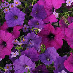 Смесь Fuseables Healing Waters: Бакопа Blutopia + Петуния Shock Wave Denim + Петуния Easy Wave Violet. Главная особенность Фузейблс Хилинг Вотерс - смешение двух видов ампельных растений: петунии (Шок Вейв и Изи Вейв) и бакопы (Блутопия).
