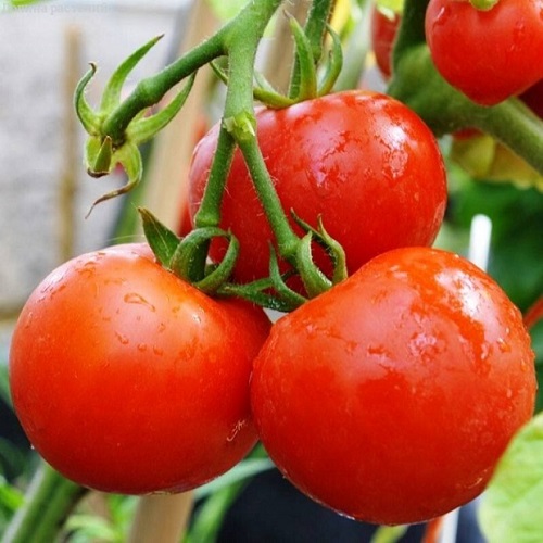 • Плоды округлые и плоскоокруглые, слаборебристые, красные, мясистые, массой до 115 грамм, с хорошим вкусом.