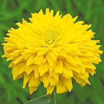 Цинния кактусовидная Бог солнца. Растение мощное, ветвистое от основания, высотой 70-75 см. Полушаровидные махровые соцветия, диаметром 8-10 см, желтой окраски. Язычковые цветки узкие, свёрнутые по длине в трубочки, причудливо изогнуты. Цветет с  июля по сентябрь. Широко используют для цветников и на срезку.