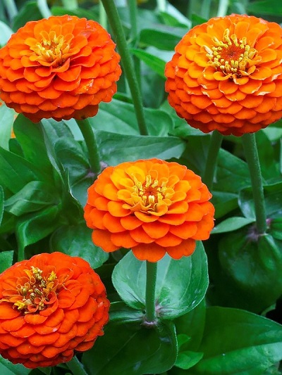 Цинния лиллипут Оранжевая. Распространенное засухоустойчивое неприхотливое растение, образующее разветвленные кустики 45-50 см высотой. Соцветия многочисленные, небольшого диаметра, махровые. Цветет обильно, с июля до октября. Используют в клумбах, рабатках, группах и для срезки.