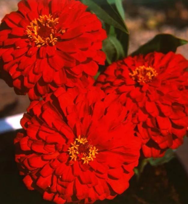 Цинния Тополино Скарлет. Очень компактные и жароустойчивые растения.