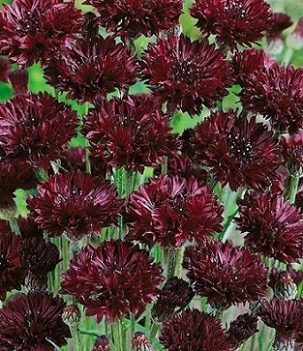 Василек Блэк Бол. Однолетник высотой до 80 см. Соцветия махровые шарообразные пурпурно-черной окраски. Неприхотлив в выращивании. Цветет с июня по сентябрь. Прекрасно подойдет для высоких бордюров, цветников в пейзажном стиле. Незаменим для создания "полевого" букета!