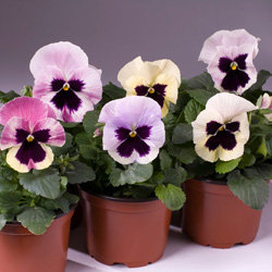 Виола крупноцветковая Селло (Viola x wittrockiana Cello) - очень компактная, с крупными цветками ярких расцветок. Эту серию отличает ранее цветение, широкая палитра окрасок.