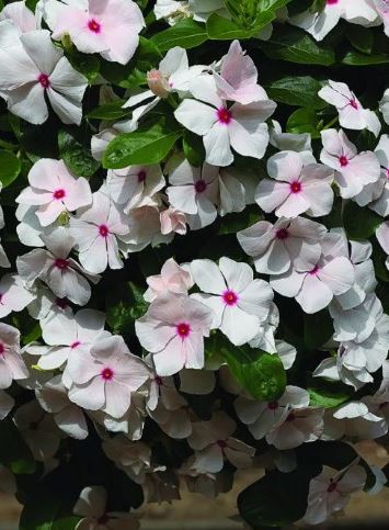 Катарантус ампельный Кора Каскад (Catharanthus roseus (Vinca) Cora Cascad). Первая и единственная серия ампельного катарантуса, обладающая резистентностью к фитофрозу. Растения прекрасно переносят жаркую погоду и прямые солнечные лучи.