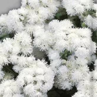 Агератум Белый шар. Компактный кустик высотой до 30см. Листья крупные, опушенные. Соцветия среднеплотные,крупные 1,5-2,0см в диаметре,с длинными рыльцами,белые. Сорт цветет с середины июня до октября. Хорошо переносит стрижку. Используют для оформления цветников различного назначения. Растение теплолюбивое, засухоустойчивое. Растет быстро, хорошо развивается на легких, питательных почвах. Предпочитает солнечное место.