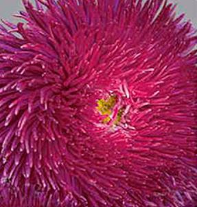 Астра игл Анжелика. Растение пирамидальной формы устойчивое, крепкое, высотой около 60-70 см. Соцветия бордового цвета, густомахровые, игольчатые, диаметром 10-12 см. Цветет в августе-сентябре. Используют очень широко: для посадки в сборные цветники группами, на рабатки - рядами, для бордюров и срезки.
