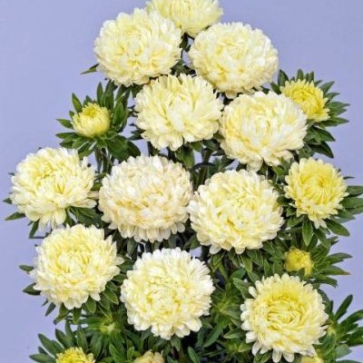 Астра Тауэр. Серия относится к коллекции старых, надежных сортов астр. Соцветия махровые, пионовидные, диаметром до 10 см, состоящие из ложноязычковых лепестков ладьевидной формы. Куст высокорослый, 65-70 см в высоту, колоновидной формы. Формирует 8-10 прочных цветоносов. Серия находит универсальное применение – от выращивания на срез до оформления клумб и цветников.
