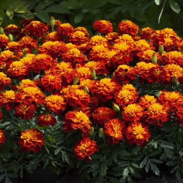 Бархатцы отклоненные Хэппи (Tagetes patula Happy) идеально подходят для производства в кассетах и ландшафтного озеленения. Растения отличаются прекрасным ветвлением, быстро заполняют посадочную емкость, устойчивы к жарким погодным условиям.