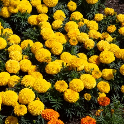 Бархатцы прямостоячие Чирлидер F1 (Tagetes erecta Cheerleader) - это новый раннецветущий гибрид прямостоячих бархатцев с компактным габитусом и очень хорошей устойчивостью к непогоде.