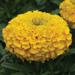 Бархатцы прямостоячие Дюн (Tagetes erecta Dune). Раннецветущий тагетес среднего размера.