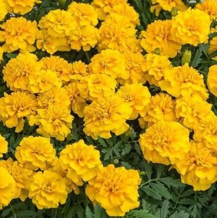 Бархатцы отклоненные махровые Джипси саншайн. Куст компактный устойчивый, высотой около 25 см, густооблиственный. Цветение обильное с июня по сентябрь. Используют для клумб, рабаток, бордюров и создания декоративных пятен.