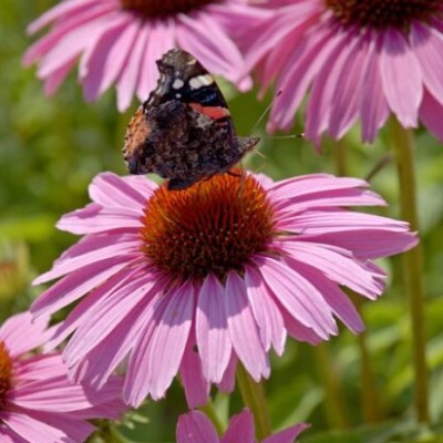 Эхинацея пурпурная Бравадо - популярный многолетник, хорошо переносит зиму в условиях средней полосы. Подходит для групповых посадок и срезки. Обильно цветет с июля до первых осенних заморозков, привлекает в сад пчел и бабочек. Растение высотой 100-120 см, с темно-розовыми цветами.
