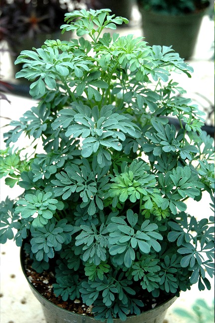 Рута Бэрри (Барри) (Ruta chalepensis Barry) -  красивое компактное вечнозеленое растение с сине-зеленой листвой. Листья имеют сильный аромат и украшены чашеобразными желтыми цветками.Необычное растение с сине-зеленой листвой. Компактное и ветвящееся растение.   Очень однородный по росту. Идеально подходит для смешанных контейнеров по текстуре и цвету листвы. Многолетник.